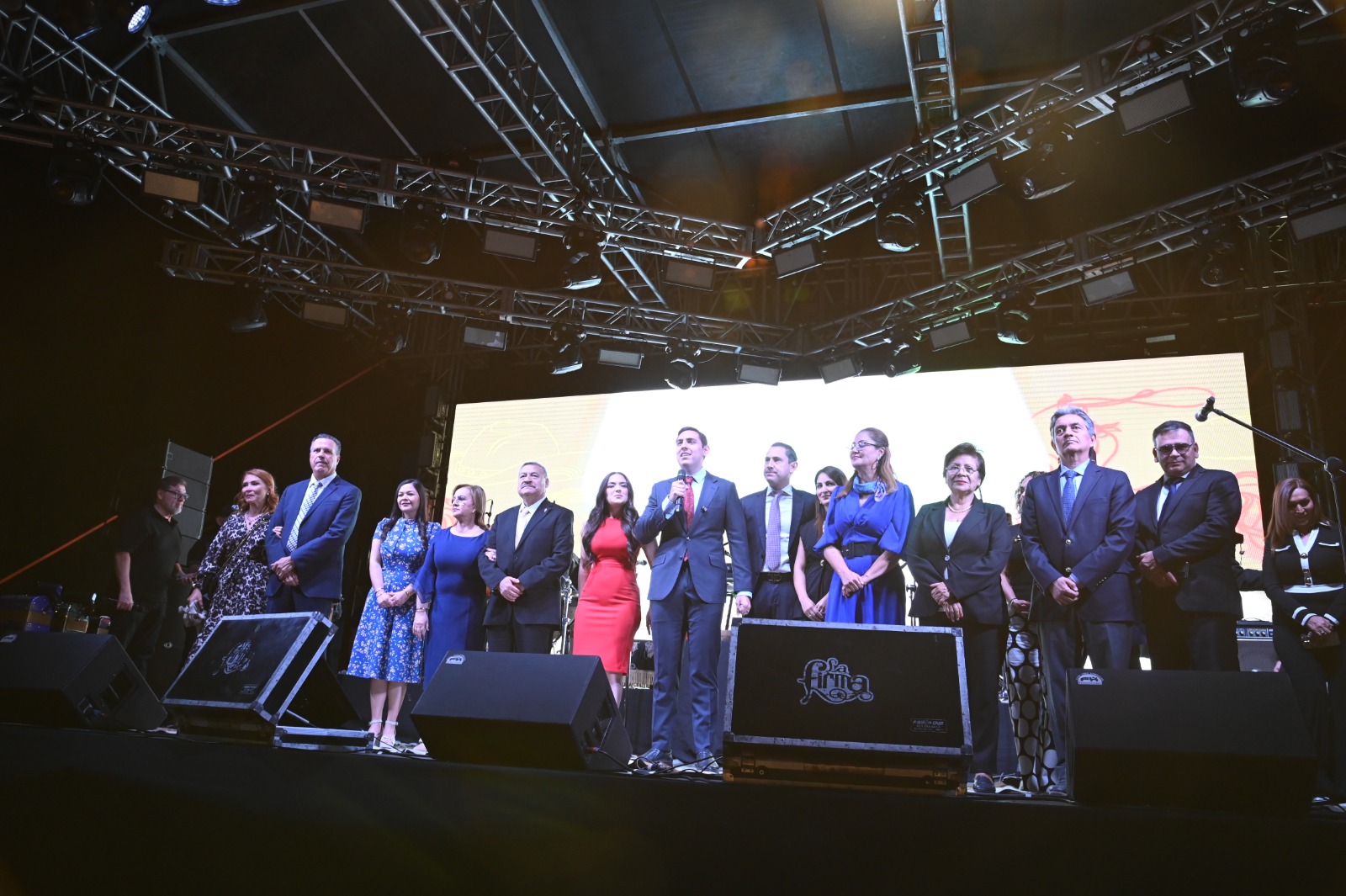 Luego de la sesión de Cabildo, el alcalde salió a la abarrotada plaza principal para festejar las celebraciones del 175 Aniversario del Municipio con una fiesta popular ambientada por diversos grupos, entre ellos La Firma, además de animadores para niños y familias.
