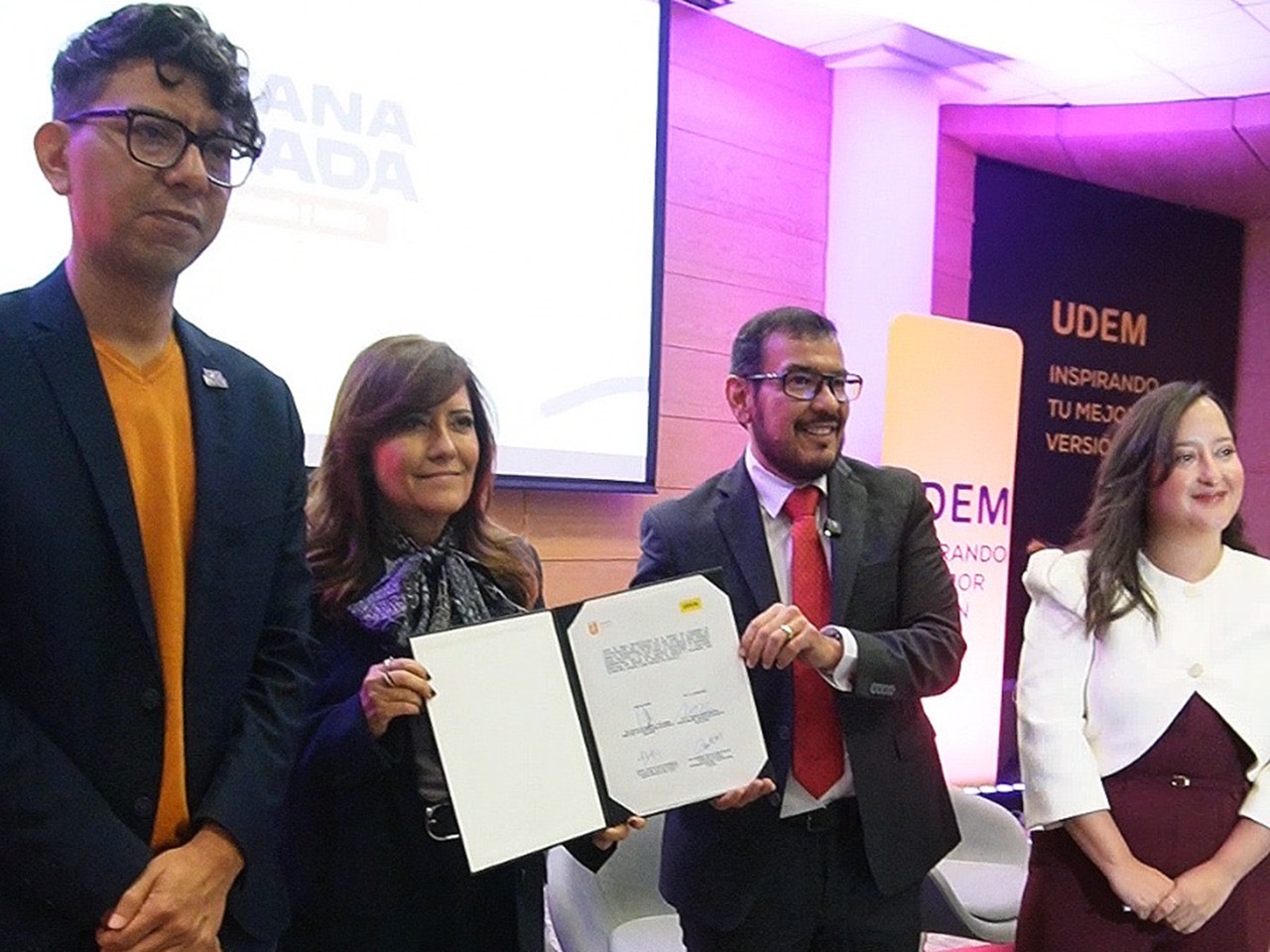 También el convenio contó con la firma de Davia Gabriela Amaya Herrera, Representante Legal de la UDEM y Marcela Chavarría y Chavarría, Directora del Centro de Equidad de Género e Igualdad UDEM.