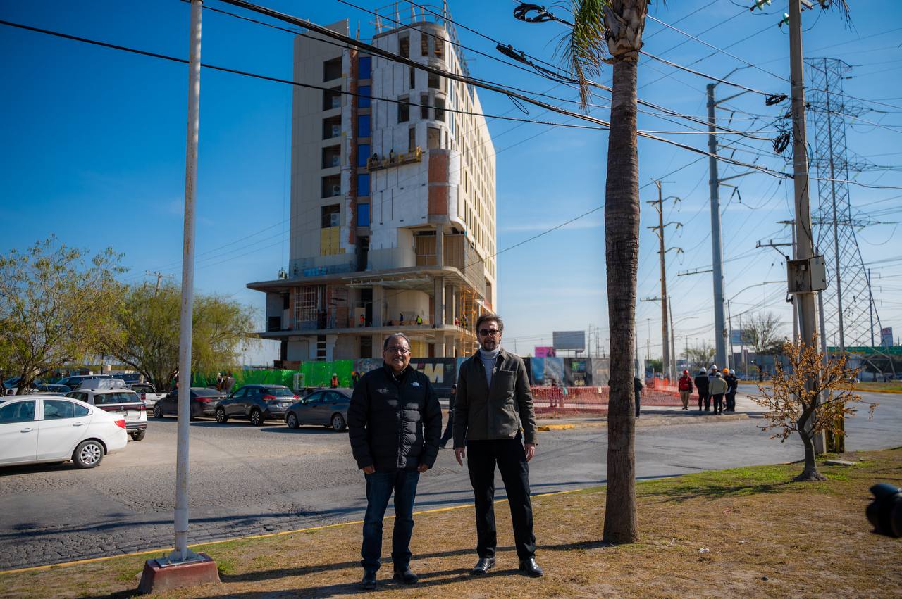 El día de hoy, el alcalde Andrés Mijes, junto a EudelioGarza Mercado, Presidente del Grupo Inmobiliario Monterrey (GIM), realizó un recorrido por las obras del innovador complejo ubicado en el cruce de las avenidas Sendero y Carretera a Colombia, donde se construye un hotel cinco estrellas que presenta ya un importante avance y que marcará un precedente en la oferta de hospedaje de alto nivel en la región.
